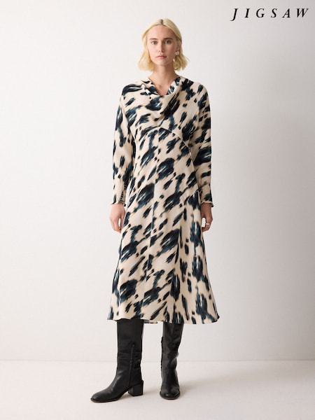 Jigsaw Cream Ikat Cowl Neck Godet Dress