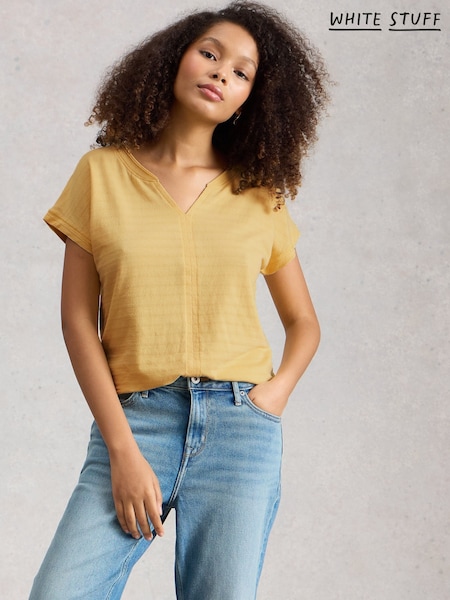 White Stuff Yellow Nelly Notch Neck Texture T-Shirt