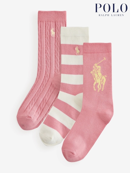 Polo Ralph Lauren Pink Stripe Big Pony Socks 3 Pack