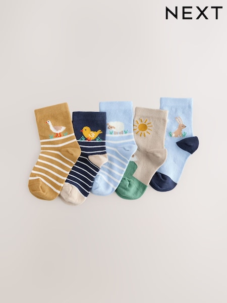 Blue/Neutral Spring Character Cotton Rich Socks 5 Pack