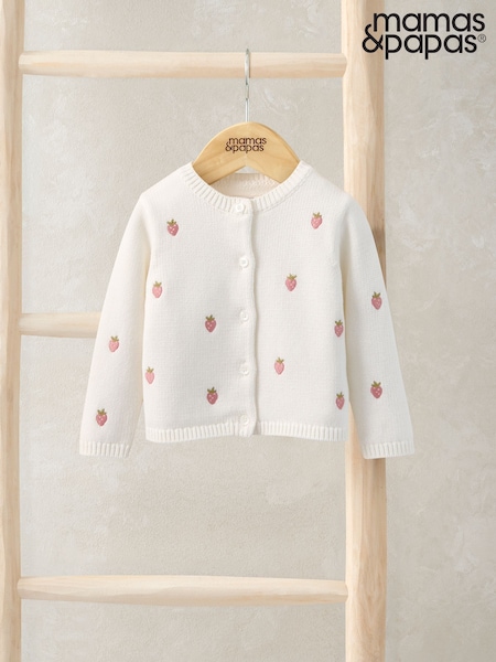 Mamas & Papas White Strawberry Embroidered Cardigan