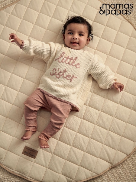Mamas & Papas Brown Embroidered Knit Cardigan & Leggings Set with Scallop Detail