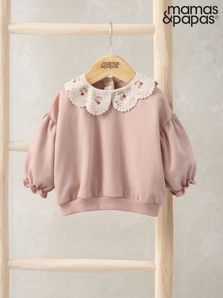 Mamas & Papas Pink Cherry Embroidered Collar Sweatshirt