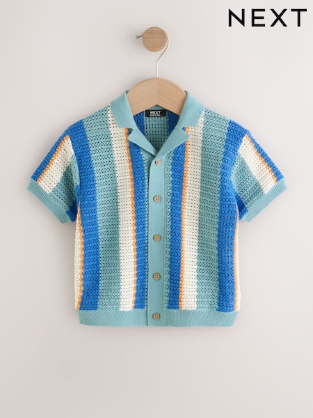Blue Knitted Stripe Polo Shirt (3mths-7yrs)