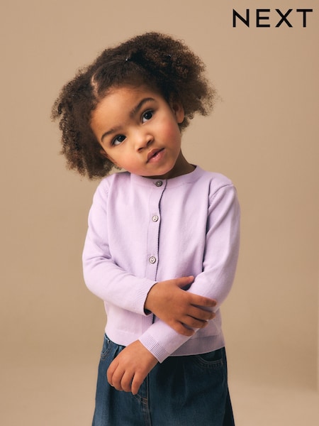 Lilac Purple Frill Collar Knitted Baby Cardigan (0mths-2yrs)