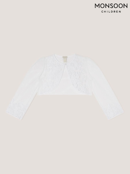 Monsoon White Felicity Embroidered Mesh Cardigan