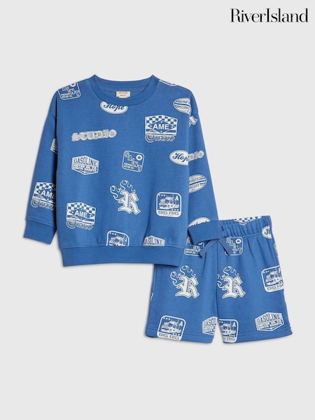 River Island Blue Badge Printed Hoody & Jogger Set