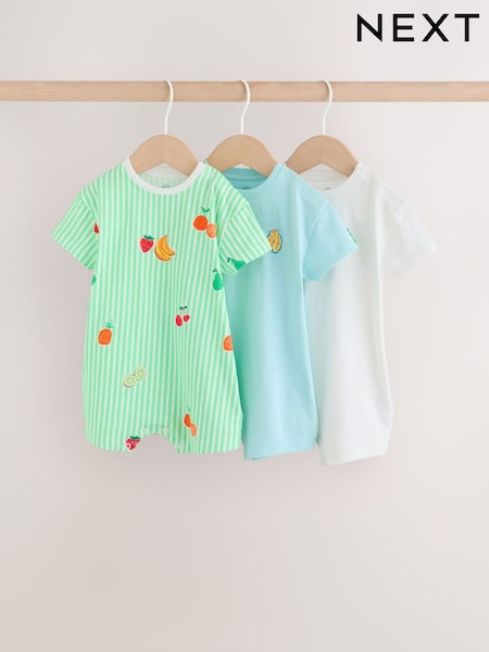 Blue Fruit Print Jersey Baby Rompers 3 Pack