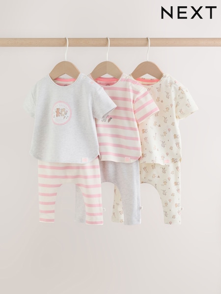 Grey and Pink Short Sleeve Top and Leggings Baby 6 Piece Set (0mths-3yrs)