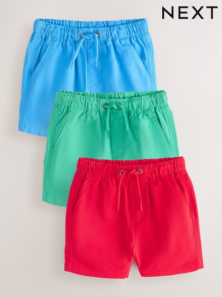 Blue/Red/Green Pull On Shorts 3 Pack (3mths-7yrs)
