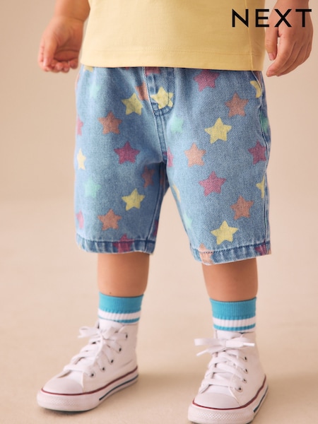 Mid Blue Denim Star Pull On Loose Shorts (3mths-7yrs)