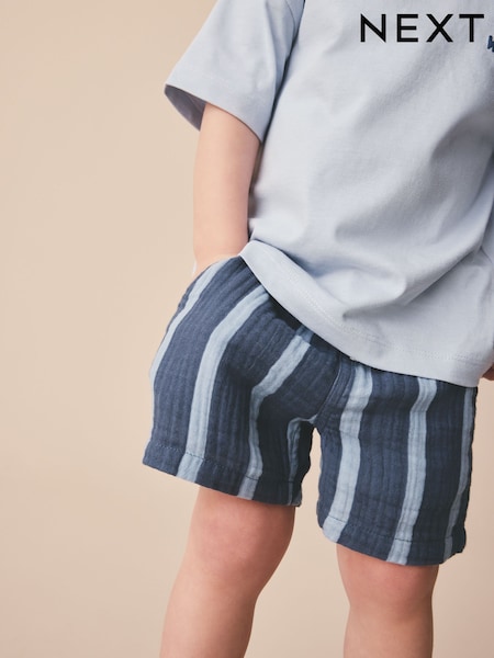 Blue/Navy Stripe Soft Textured Pull On Shorts (3mths-7yrs)