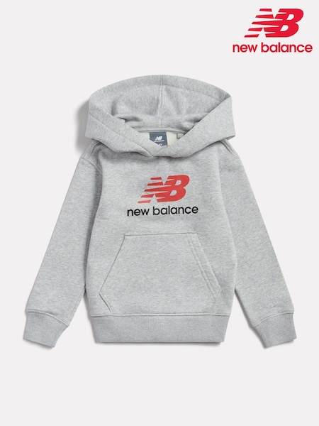 New Balance Grey Brushback Stacked Logo Hoodie