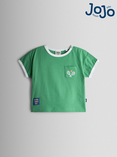 JoJo Maman Bébé Green Tennis Club Slogan Applique T-Shirt