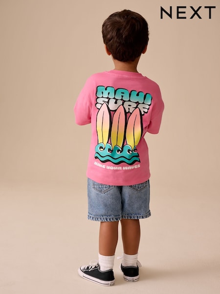Pink Surfboard Short Sleeve Back Print T-Shirt (3mths-7yrs)