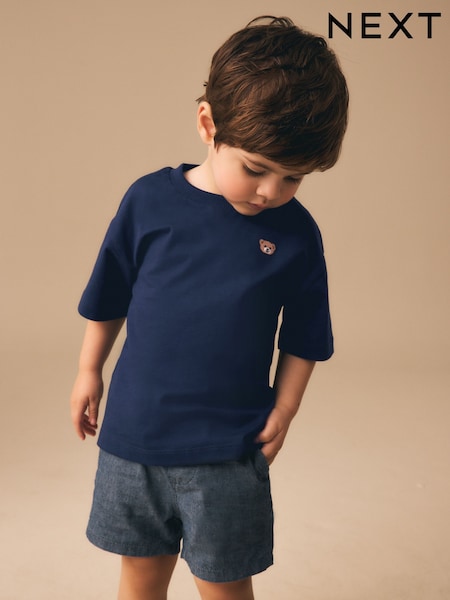 Navy Blue Embroidery Bear Short Sleeve Small Graphic T-Shirt (3mths-7yrs)