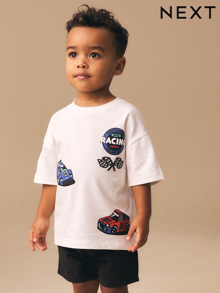 White Race Car Placement Short Sleeve Graphic T-Shirt (3mths-7yrs)