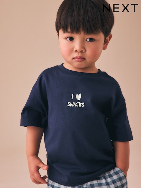 Navy Blue I love snacks Slogan Short Sleeve Small Graphic T-Shirt (3mths-7yrs)