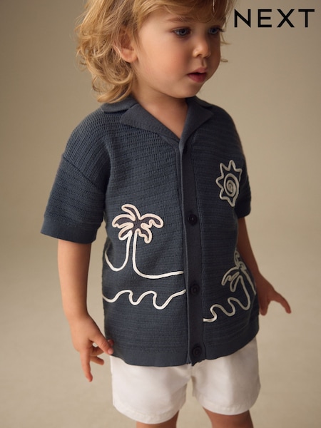 Blue Character Button Neck Knitted Polo Shirt (3mths-7yrs)