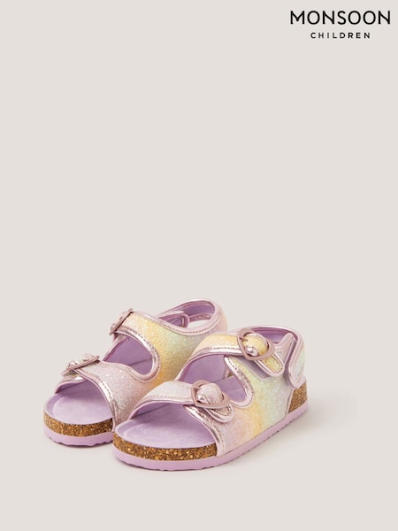 Monsoon Purple Rainbow Heart Buckle Sandals