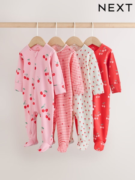 Red/Pink Two Way Zip Baby Sleepsuits 4 Pack (0mths-2yrs)