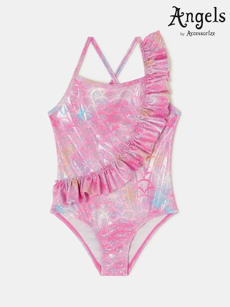Angels By Accessorize Pink Sparkle Frill Mermaid Swimsuit