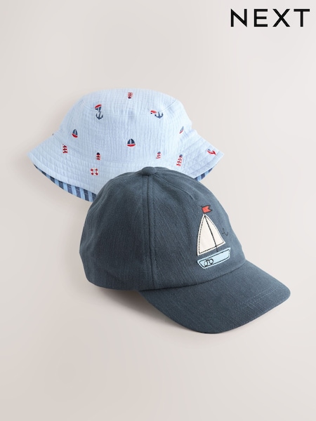 Blue Boats Cap Bucket Hats 2 Pack (3mths-10yrs)