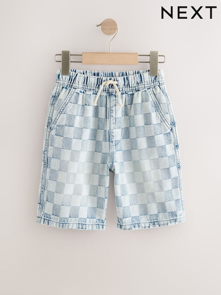 Blue/Grey Regular Fit Checkerboard Shorts (3-16yrs)