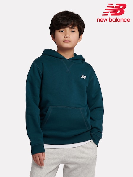 New Balance Green Small Kids French Terry 100% Cotton Logo Hoodie