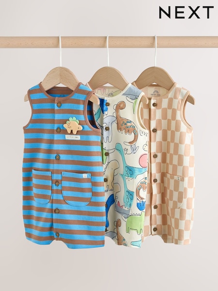 Yellow Spring/Character Button Through Baby Jersey Rompers 3 Pack