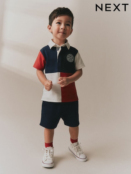 Red/Blue/Green Colourblock Short Sleeve Polo Shirt and Shorts Set (3mths-7yrs)