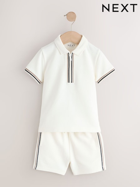 White Zip Neck Short Sleeve Polo Shirt And Shorts Set (3mths-7yrs)