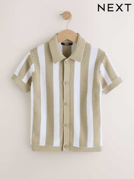 Ecru Geo Knitted Button Through Polo Shirt (3-16yrs)