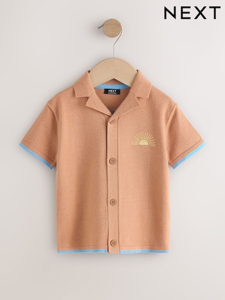 Orange Knitted Revere Collar Polo Shirt (3mths-7yrs)