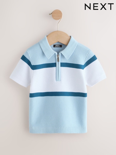 Blue Colourblock Knitted Zip Neck Polo Shirt (3mths-7yrs)