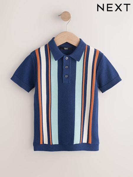 Navy Blue Knitted Button Neck Polo Shirt (3-16yrs)