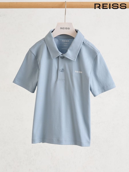 Reiss Soft Blue Tello 3-9 yrs Airwater-Cotton Logo Polo Shirt