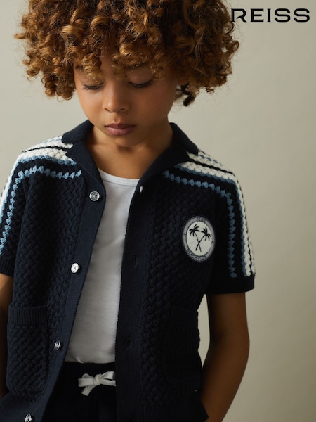 Reiss Navy Sandy 3-9 yrs Knitted Cotton Cuban Collar Shirt