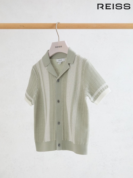 Reiss Dark Sage Filby 9-13 yrs Cotton Blend Diamond Knit Shirt