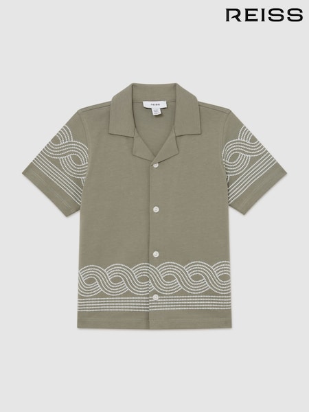Reiss Green Maki 9-13 yrs Abstract Print Cuban Collar Shirt