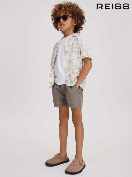 Reiss Ecru Gobi 3-9 yrs Sketch Design Cuban Collar Shirt