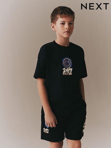 Black Short Sleeve T-Shirt and Shorts Set (3-16yrs)