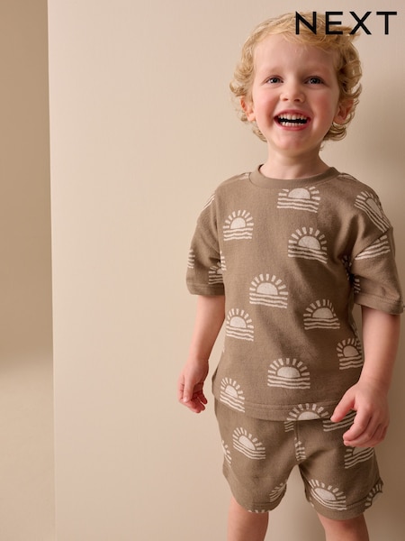 Brown Sun Short Sleeve All-Over Print T-Shirt and Shorts Set (3mths-7yrs)