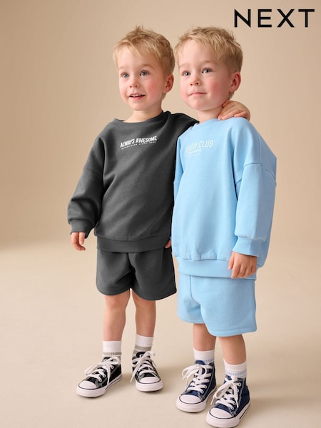 Rust Brown and Teal Crew Neck Sweatshirt and Shorts 2 Pack Set (3mths-7yrs)