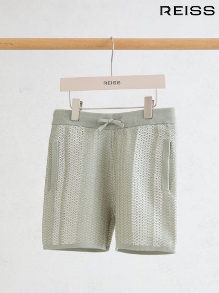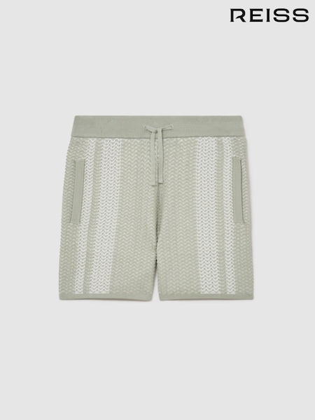 Reiss Sage/White Rudy Cotton Textured-Knit Striped Shorts