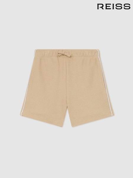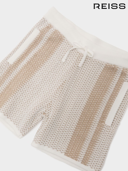 Reiss Off White/Light Camel Rudy 9-13 yrs Cotton Textured-Knit Striped Shorts
