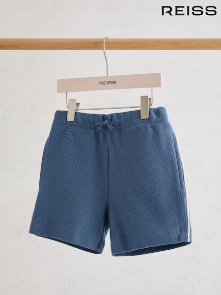 Reiss Blue Echo 9-13 yrs Cotton Textured-Knit Piped Shorts