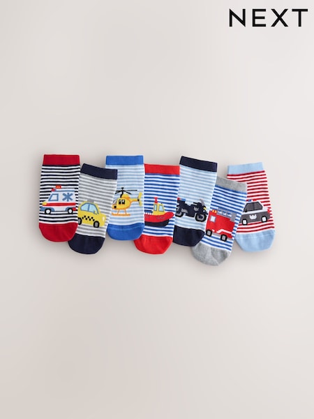 Red/Blue Transport Cotton Rich Trainer Socks 7 Pack