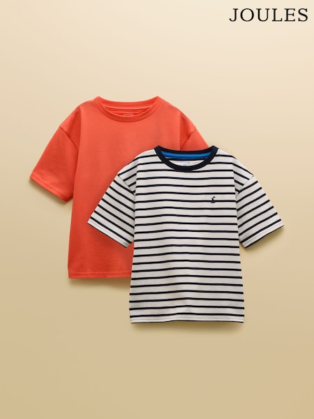 Joules Boys' Let's Go Orange & Navy Short Sleeve T-Shirts 2 Pack