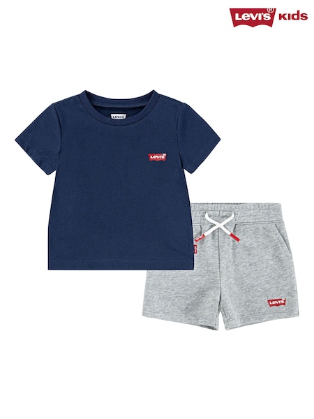Levi's® Blue Batwing Short Sleeve T-Shirt and Knit Shorts 2 Piece Set